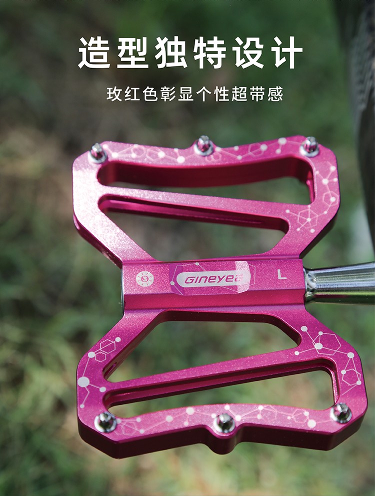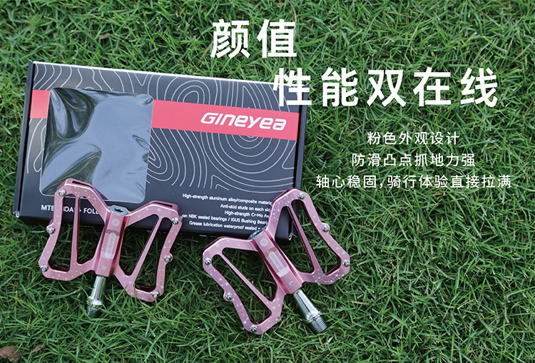 Gineyea碳纖維腳踏自行車(chē)公路車(chē)山地車(chē)防滑釘踩面鈦合金軸腳踏